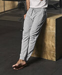 60% Combed cotton, 40% Polyester. Elastic waist with string. Back panel zipped pocket. Self-fabric cuffs. Double pre-shrunk. Silicone treatment. Two front pockets with zips. SBS zips.